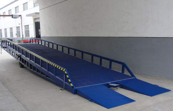 移動式液壓登車橋是叉車對貨車裝卸貨時,叉車從地面直接行駛至車廂的專用設備,它可以隨時轉移裝卸作業場地,實現貨物的快速裝卸。利用叉車牽引或推行,可以將移動式液壓登車橋輕松轉移到作業位置就位,叉車可自如地通過登車橋,行駛于貨車與地面之間,實現快速、安全地裝卸貨。